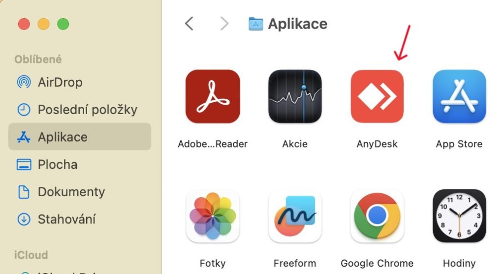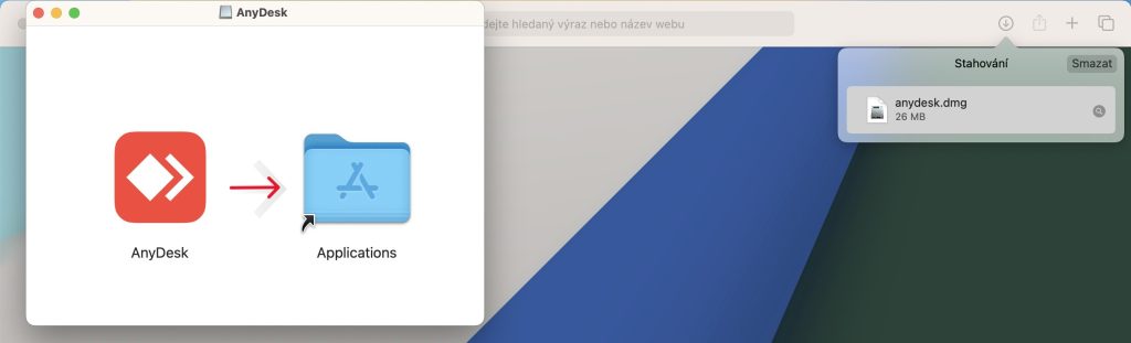 - Otevřete jej a přetáhněte ikonu AnyDesk do složky Applications (Aplikace).